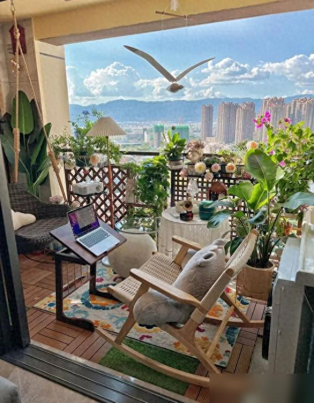它是你早上起来,能在阳台摘片薄荷叶泡牛奶;是下雨的时候,能坐在吊椅上听雨声打在绿萝叶上;是周末下午,能和朋友在阳台啃着蛋糕,看云慢慢飘过去。