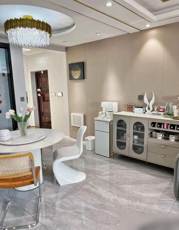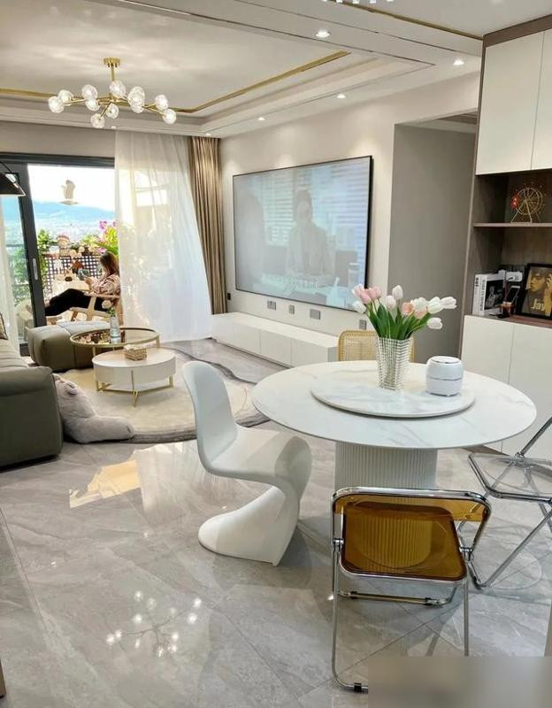 周末晚上拉上窗帘,抱着猫看老电影,比盯着电视里的广告舒服;圆形茶几不占地方,想挪到阳台当小餐桌都行;餐厅的大理石餐桌带转盘,家人围坐夹菜不用站起来,奶油色椅子软乎乎的,吃完晚饭坐在那剥橘子,连空气都变温柔了。