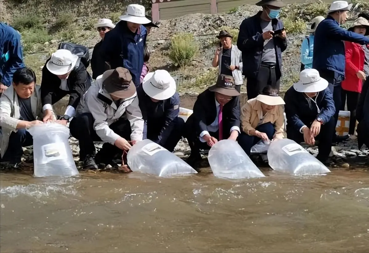 在放生人工养殖的川陕哲罗鲑时,也会一并放生一些雅鱼等其他鱼类。